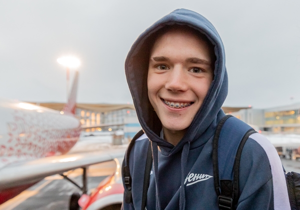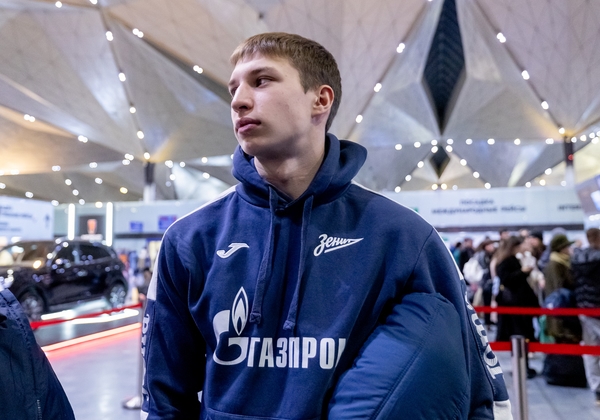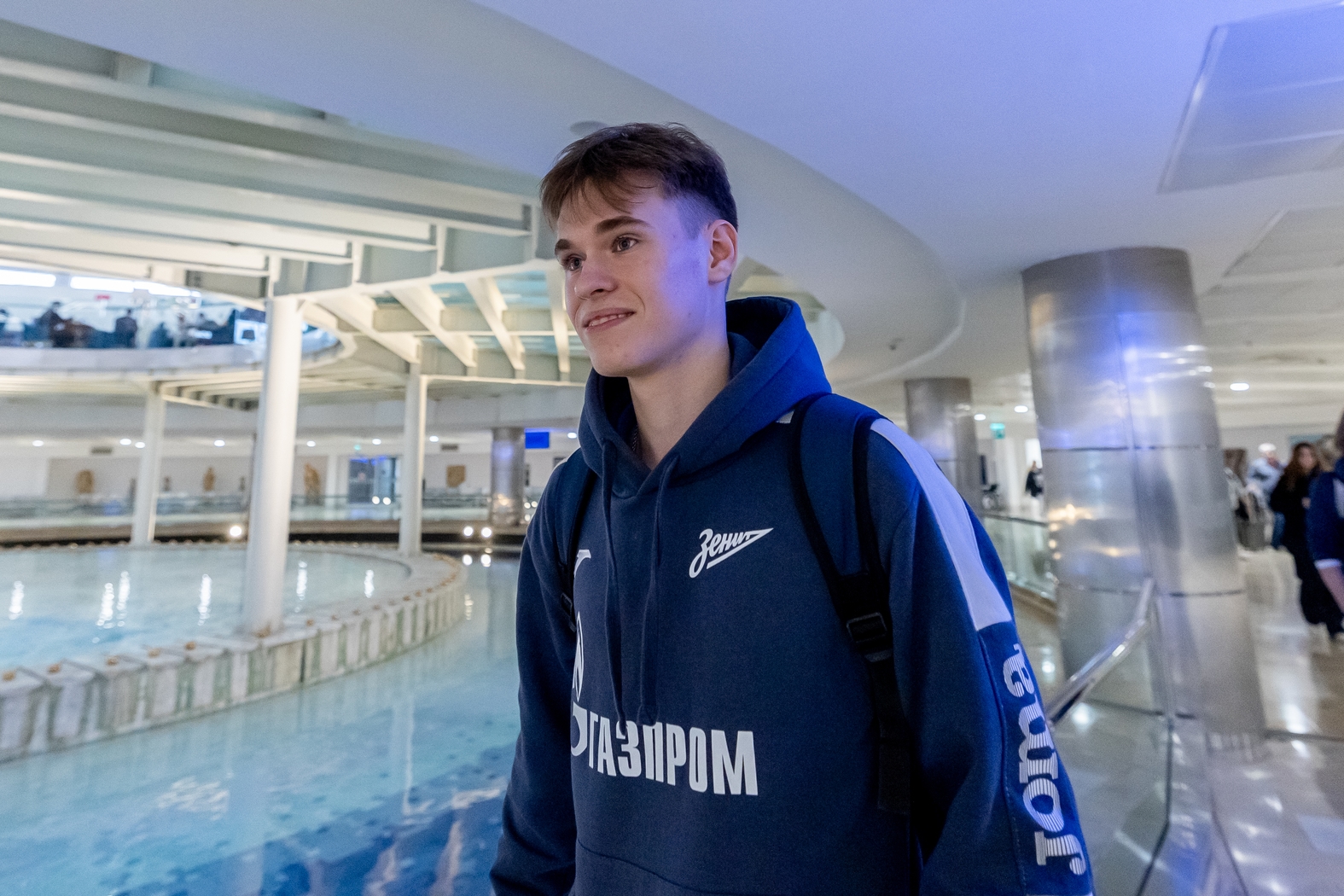 29.01.2024. Россия, Санкт-Петербург, аэропорт «Пулково». Выезд молодёжной команды «Зенит» на первый учебно-тренировочный сбор в Турцию. На снимке: Никита Базилевский, нападающий ФК «Зенит».Автор: Евгений Васильев / ФК «Зенит»