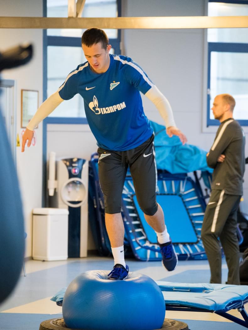 13.10.2017. Россия, Санкт-Петербург, Удельный парк. Тренировка основного состава ФК «Зенит» перед матчем РОСГОССТРАХ-Чемпионата России 2017/18, 13-й тур, «Зенит» — «Арсенал». На снимке: Дмитрий Полоз, нападающий ФК «Зенит».Автор: Вячеслав Евдокимов / ФК «Зенит»