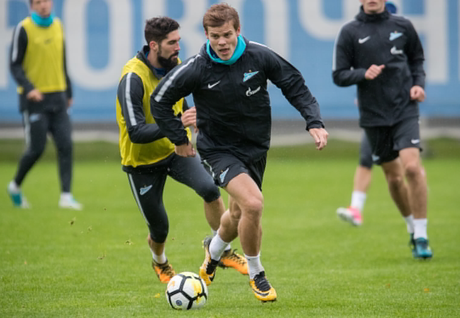 13.10.2017. Россия, Санкт-Петербург, Удельный парк. Тренировка основного состава ФК «Зенит» перед матчем РОСГОССТРАХ-Чемпионата России 2017/18, 13-й тур, «Зенит» — «Арсенал». На снимке: Александр Кокорин, нападающий ФК «Зенит».Автор: Вячеслав Евдокимов / ФК «Зенит»