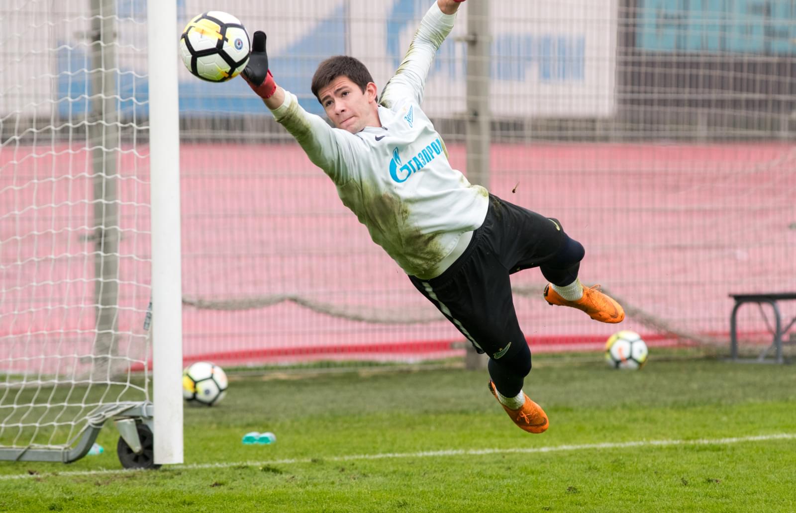 17.04.2018. Россия, Санкт-Петербург, Удельный парк. Тренировка основного состава ФК «Зенит» перед матчем РОСГОССТРАХ-Чемпионата России 2017/18, 23-й тур, «Зенит» — «Динамо». На снимке: Никита Гойло, вратарь ФК «Зенит».Автор: Вячеслав Евдокимов / ФК «Зенит»