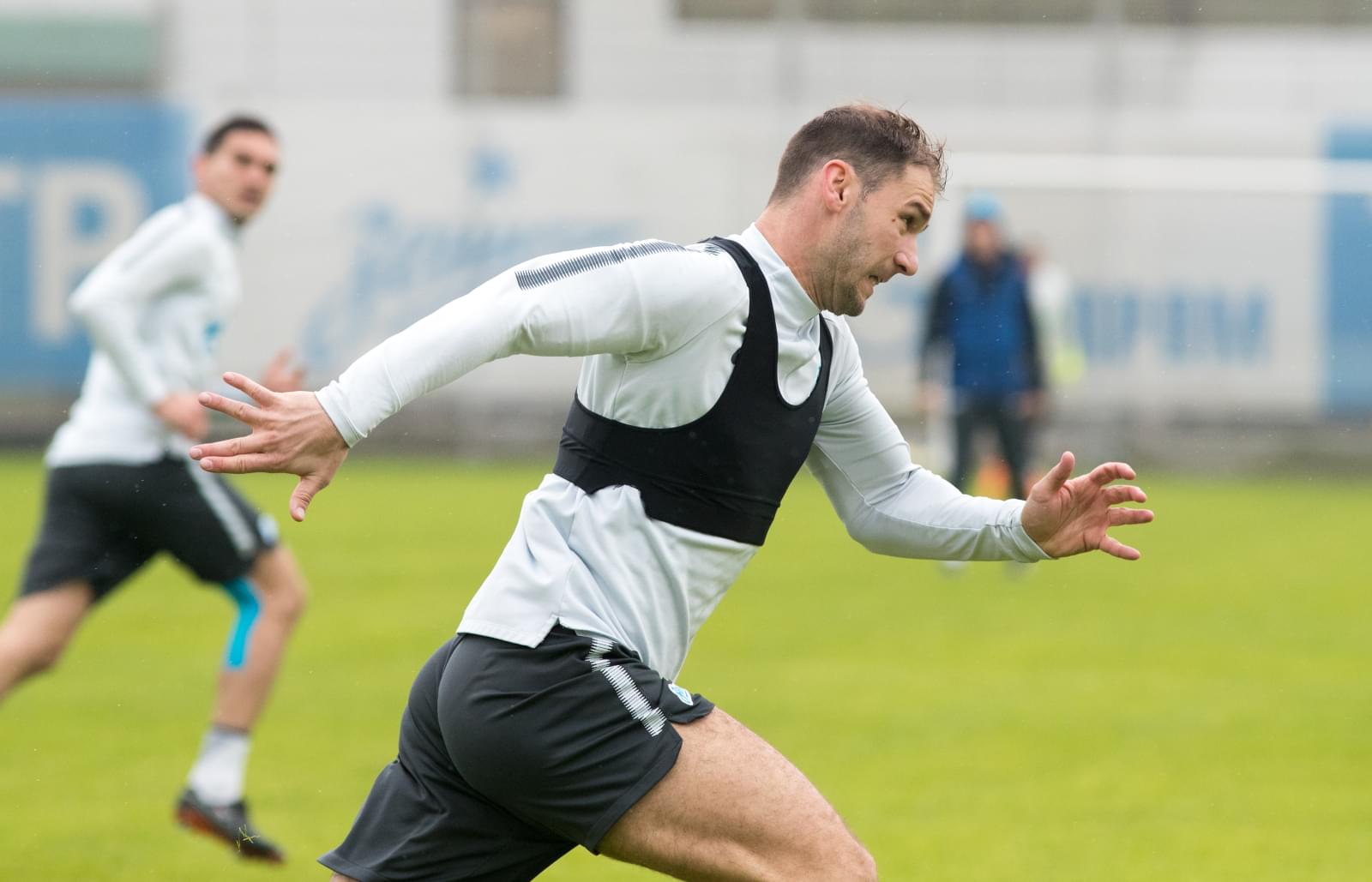 17.04.2018. Россия, Санкт-Петербург, Удельный парк. Тренировка основного состава ФК «Зенит» перед матчем РОСГОССТРАХ-Чемпионата России 2017/18, 23-й тур, «Зенит» — «Динамо». На снимке: Бранислав Иванович, защитник ФК «Зенит».Автор: Вячеслав Евдокимов / ФК «Зенит»