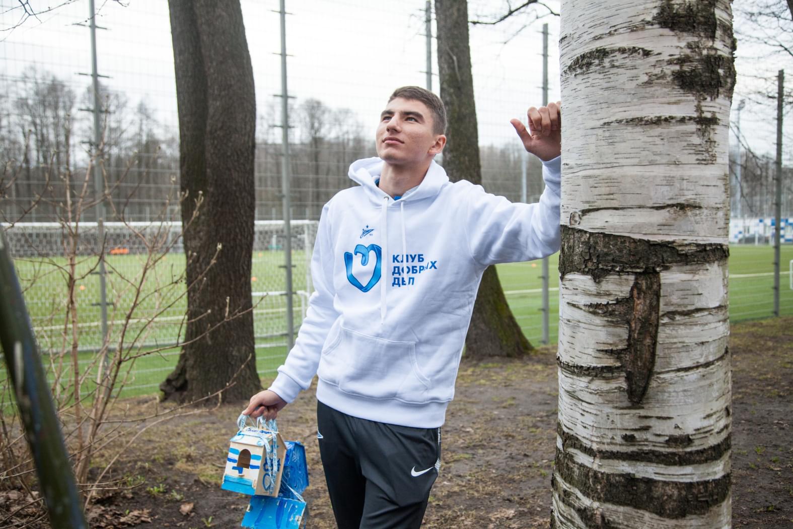 20.04.2018. Россия, Санкт-Петербург, «Газпром» — тренировочный центр. «Марафон добра»: Футболисты «Зенита»-2 вешают скворечники в Удельном парке. На снимке: Даниил Пенчиков, защитник ФК «Зенит».Автор: Анна Мейер / ФК «Зенит»