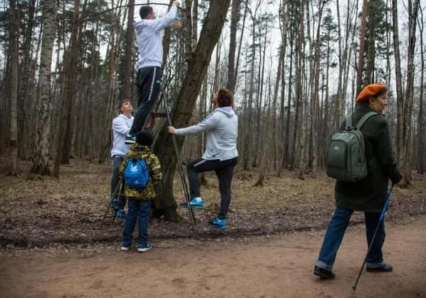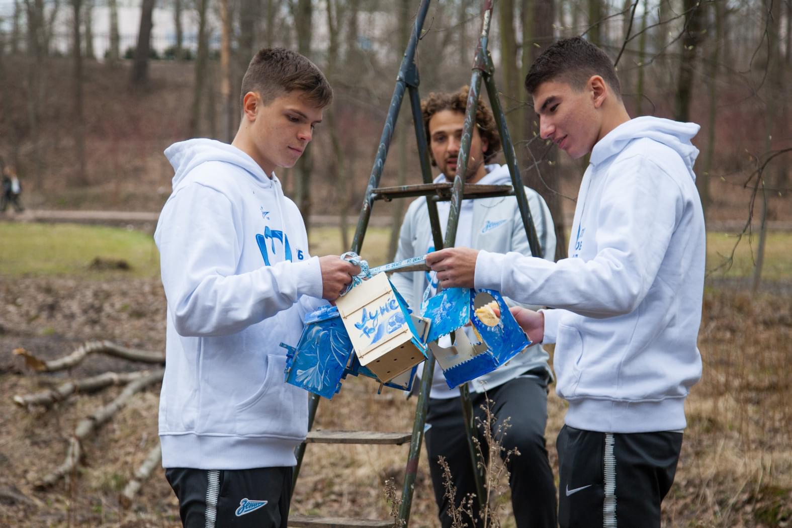 20.04.2018. Россия, Санкт-Петербург, «Газпром» — тренировочный центр. «Марафон добра»: Футболисты «Зенита»-2 вешают скворечники в Удельном парке.Автор: Анна Мейер / ФК «Зенит»