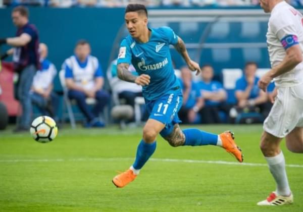 13.05.2018. Россия, Санкт-Петербург, стадион «Санкт-Петербург». РОСГОССТРАХ-Чемпионат России 2017/18, 30-й тур, «Зенит» — «СКА-Хабаровск». На снимке в синей форме: Эмилиано Ригони, полузащитник ФК «Зенит».Автор: Вячеслав Евдокимов / ФК «Зенит»