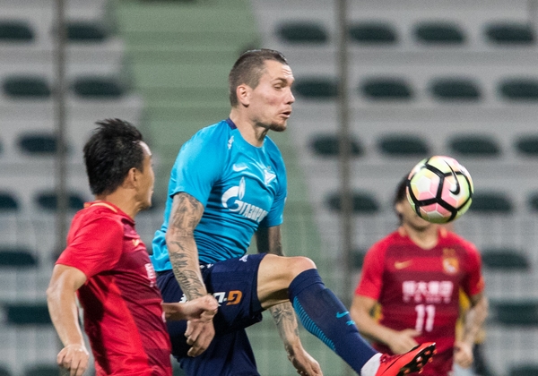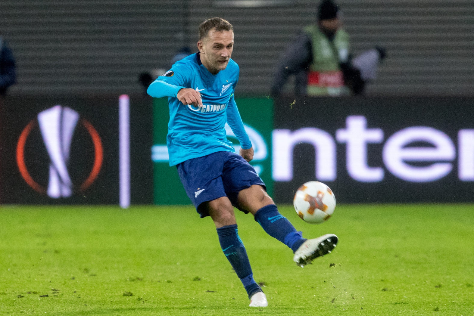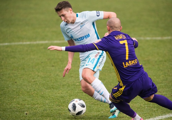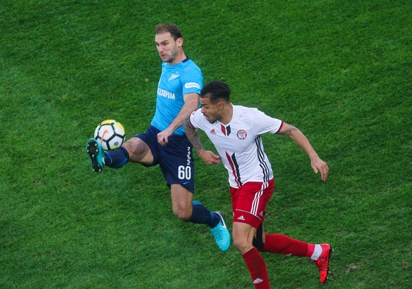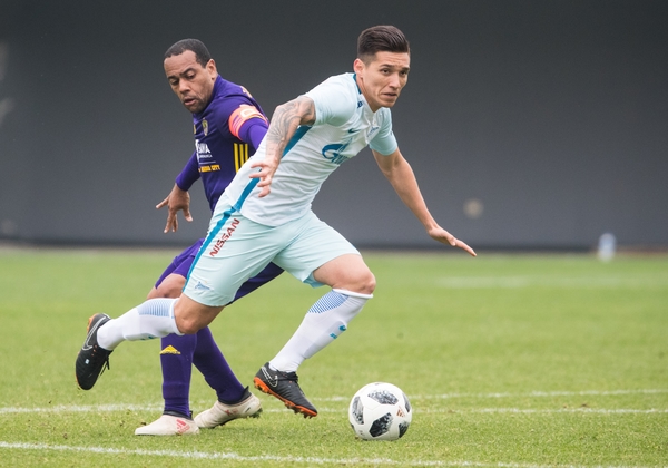 10.02.2018. Турция, Анталия, стадион «Мардан». Вторые зимние «Газпром» — тренировочные сборы: товарищеский матч «Зенит» — «Марибор». На снимке в светлой форме: Далер Кузяев, полузащитник ФК «Зенит».Автор: Вячеслав Евдокимов / ФК «Зенит»