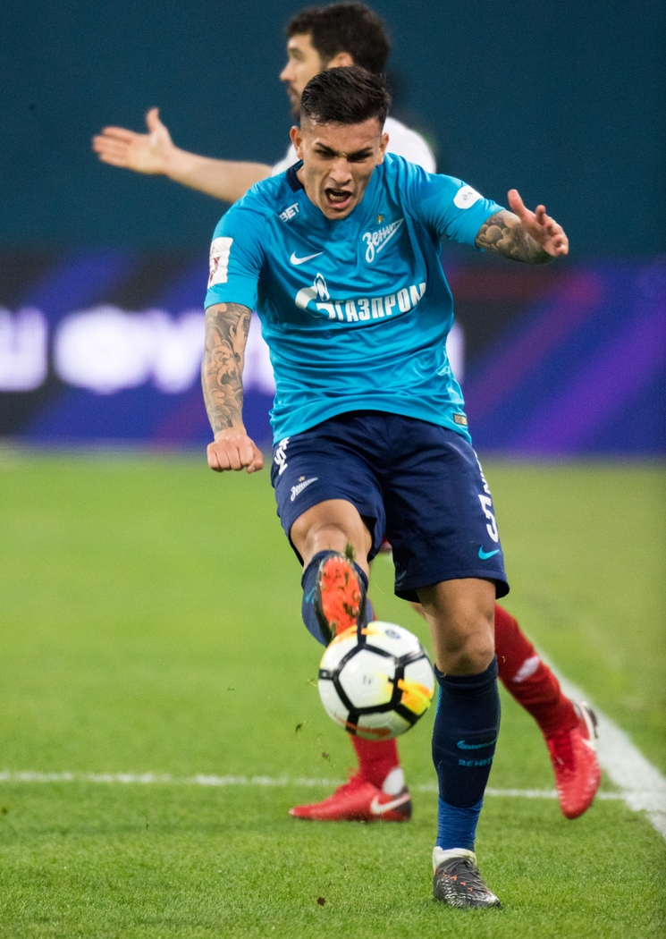 22.02.2018. Россия, Санкт-Петербург, стадион «Санкт-Петербург». Лига Европы УЕФА 2017/18, «Зенит» — «Селтик». На снимке в синей форме: Леандро Паредес, полузащитник ФК «Зенит».Автор: Вячеслав Евдокимов / ФК «Зенит»