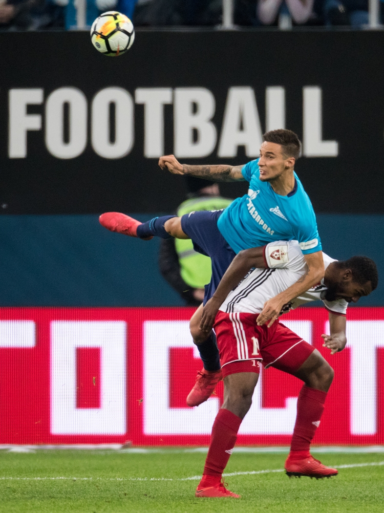 15.03.2018. Россия, Санкт-Петербург, стадион «Санкт-Петербург». Лига Европы УЕФА 2017/18, 1/8 финала, «Зенит» — «РБ Лейпциг». На снимке: Александр Кокорин, нападающий ФК «Зенит».Автор: Вячеслав Евдокимов / ФК «Зенит»