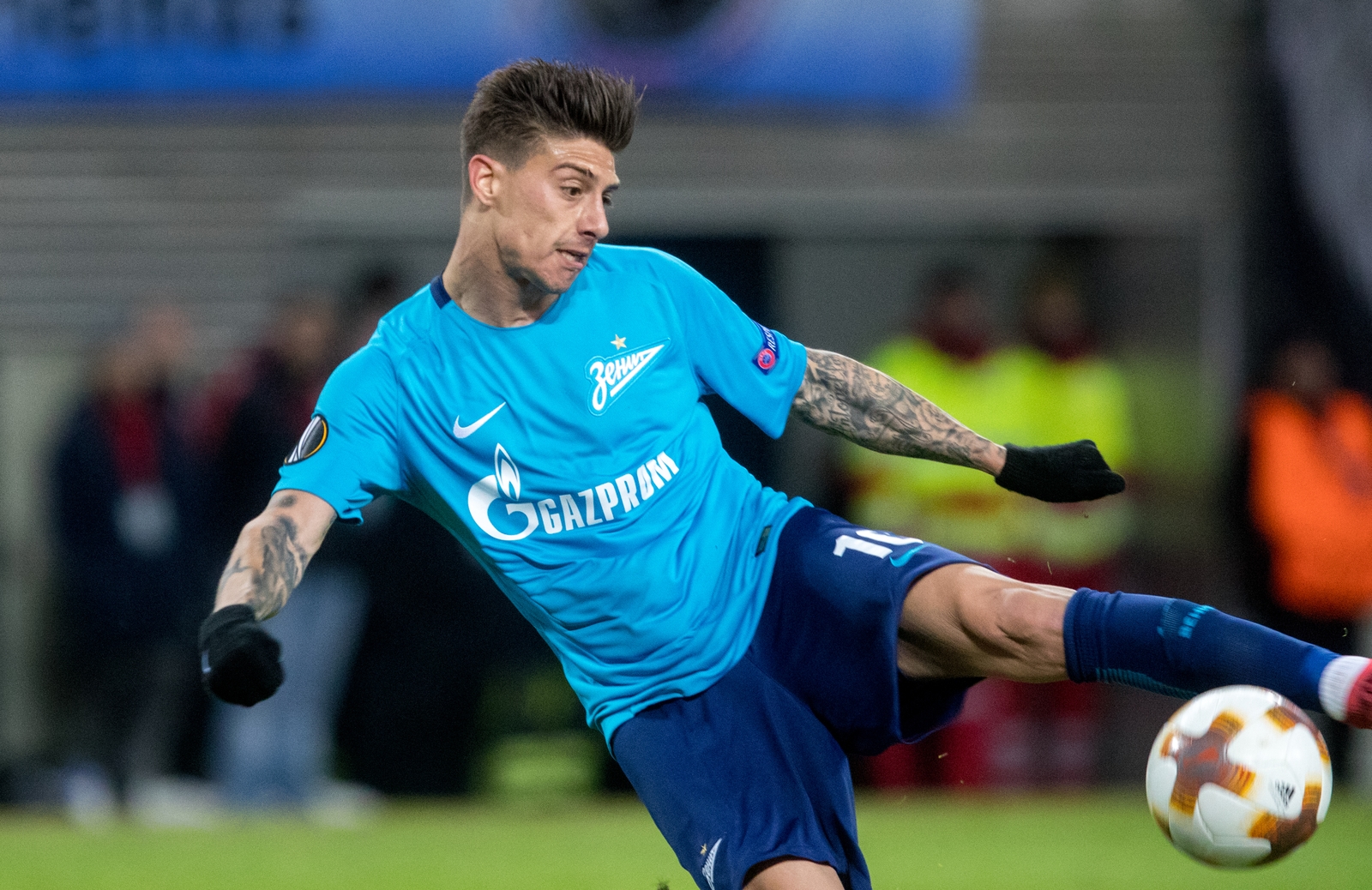 09.03.2018. Германия, Лейпциг, «РБ Арена». Лига Европы УЕФА 2017/18, 1/8 финала, «РБ Лейпциг» — «Зенит». На снимке в синей форме: Доменико Кришито, защитник ФК «Зенит».Автор: Вячеслав Евдокимов / ФК «Зенит»