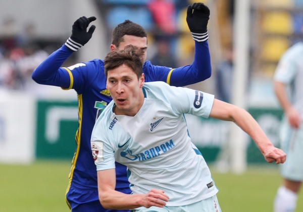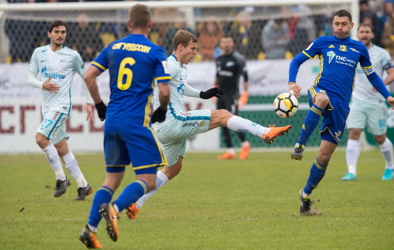 11.03.2018. Россия, Ростов-на-Дону, «Олимп-2». РОСГОССТРАХ-Чемпионат России 2017/18, 22-й тур, «Ростов» — «Зенит». На снимке в белой форме: Далер Кузяев, полузащитник ФК «Зенит».Автор: Вячеслав Евдокимов / ФК «Зенит»