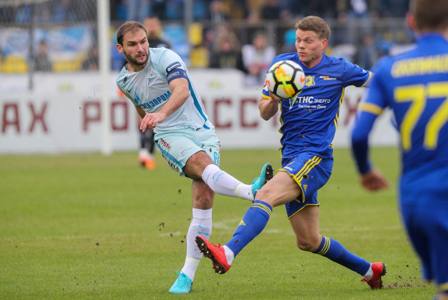 11.03.2018. Россия, Ростов-на-Дону, «Олимп-2». РОСГОССТРАХ-Чемпионат России 2017/18, 22-й тур, «Ростов» — «Зенит». На снимке в белой форме: Бранислав Иванович, защитник ФК «Зенит».Автор: Вячеслав Евдокимов / ФК «Зенит»