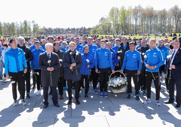 09.05.2018. Россия, Санкт-Петербург. В честь 73-й годовщины Победы в Великой Отечественной войне футболисты и тренерский штаб ФК «Зенит» возложили цветы к монументу «Мать-Родина» на Пискаревском мемориальном кладбище.Автор: Вячеслав Евдокимов / ФК «Зенит»