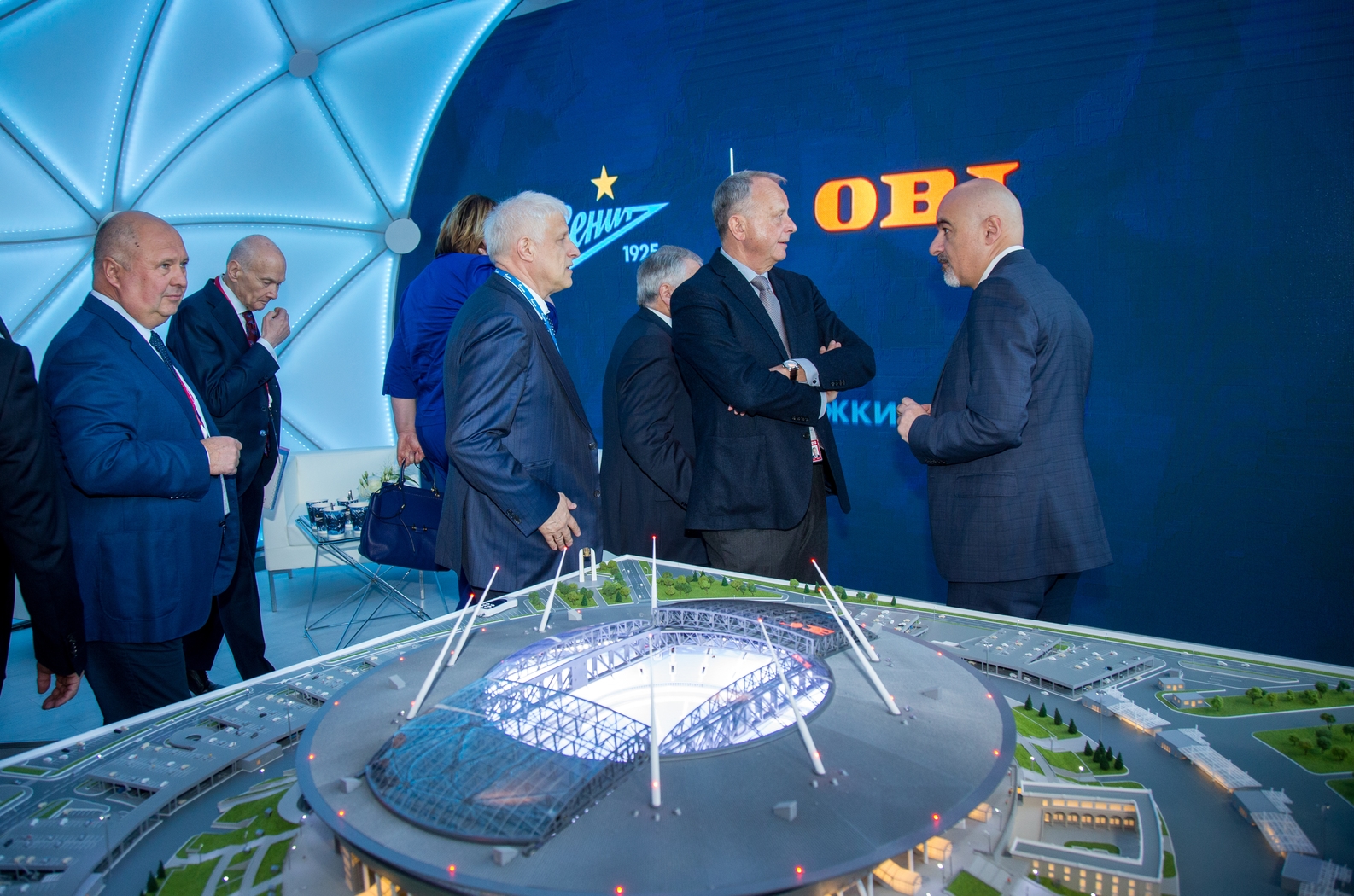 24.05.2018. Россия, Санкт-Петербург, «Экспофорум». Футбольный клуб «Зенит» принимает участие в Петербургском Международном Экономическом Форуме 2018 (ПМЭФ-2018). На снимке: Сергей Фурсенко, председатель правления футбольного клуба «Зенит» (в центре справа).Автор: Евгений Асмолов / ФК «Зенит»