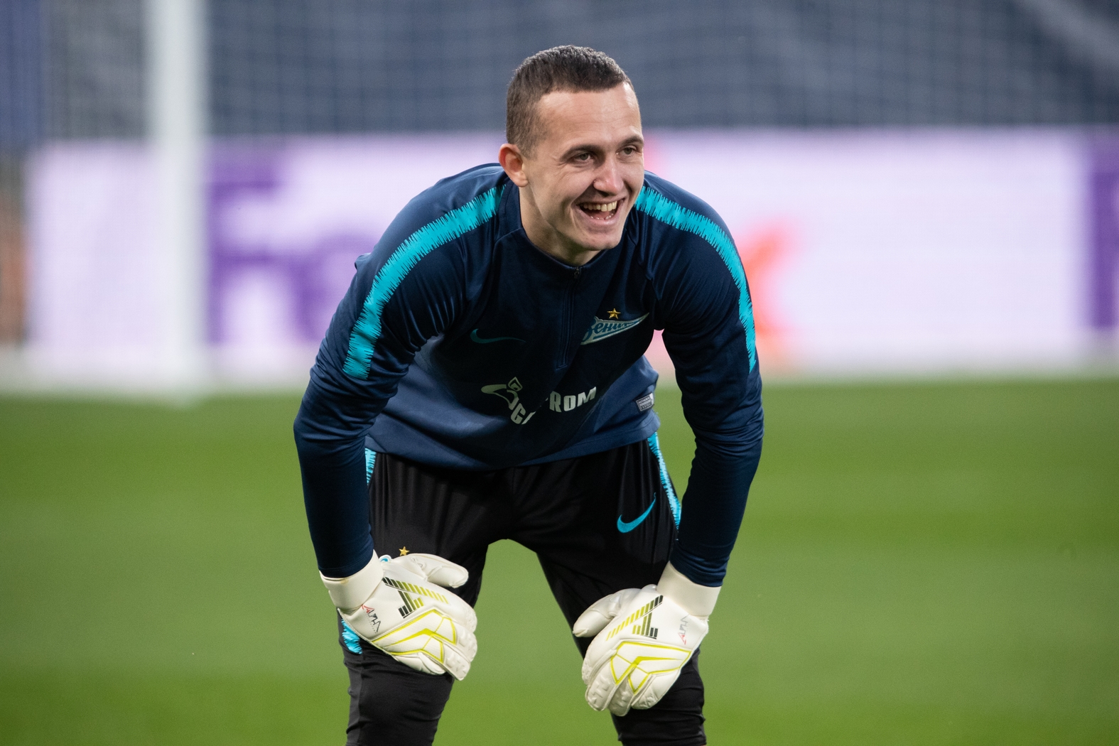 13.03.2019. Испания, Вила-Реал, «Эстадио де ла Серамика». Открытая тренировка основного состава ФК «Зенит» перед матчем Лига Европы УЕФА 2018/19, 1/8-я финала, «Вильярреал» — «Зенит». На снимке: Андрей Лунёв, вратарь ФК «Зенит».Автор: Вячеслав Евдокимов / ФК «Зенит»