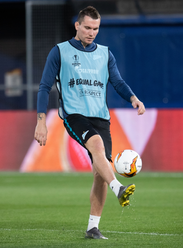 13.03.2019. Испания, Вила-Реал, «Эстадио де ла Серамика». Открытая тренировка основного состава ФК «Зенит» перед матчем Лига Европы УЕФА 2018/19, 1/8-я финала, «Вильярреал» — «Зенит». На снимке: Антон Заболотный, нападающий ФК «Зенит».Автор: Вячеслав Евдокимов / ФК «Зенит»