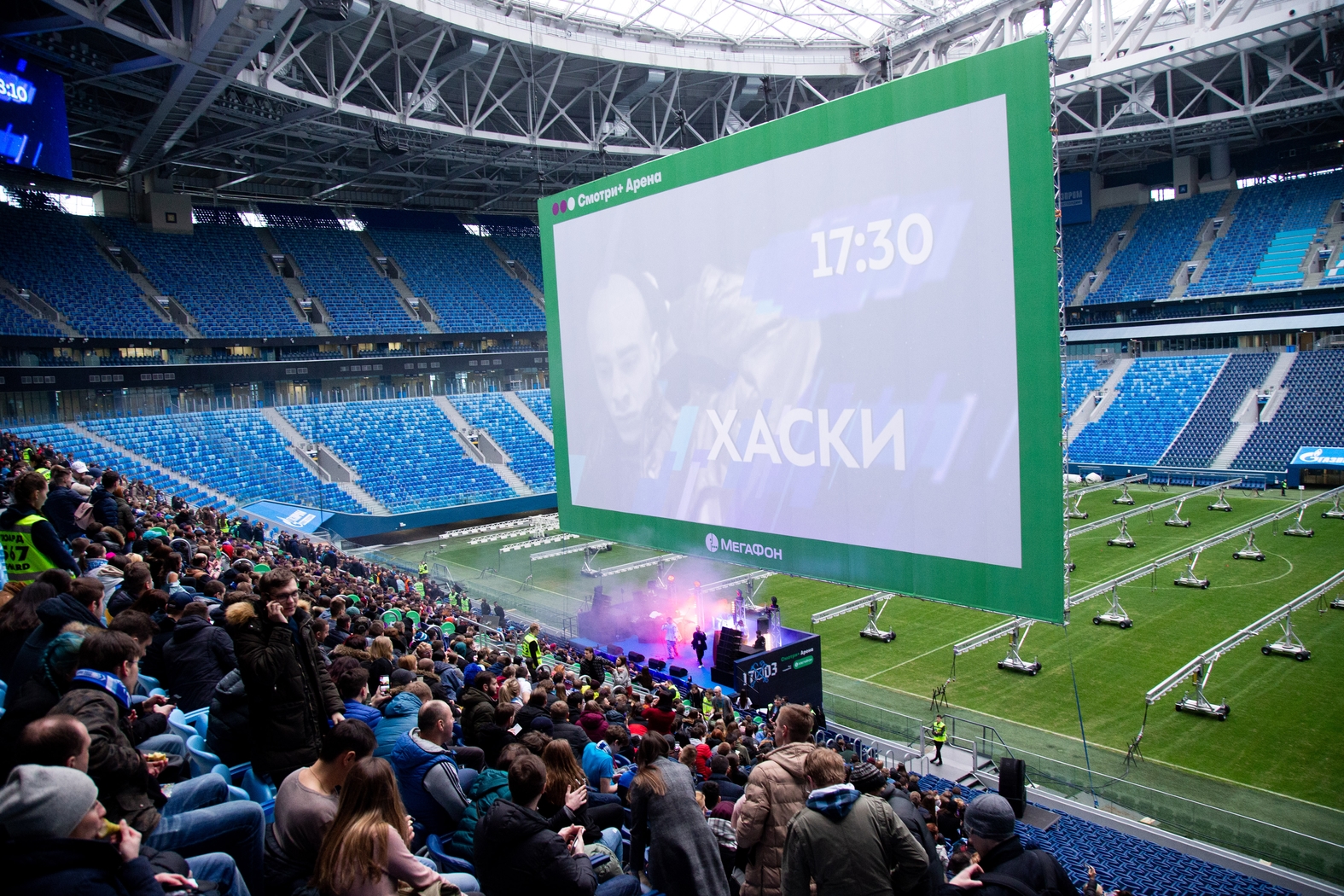 17.03.2019. Россия, Санкт-Петербург, «Газпром Арена». Группа «Хаски» выступает в Фан-зоне «Смотри+ Арена» на матче Российская Премьер-Лига 2018/19, 20-й тур, «Спартак» — «Зенит».Автор: Анна Мейер / ФК «Зенит»