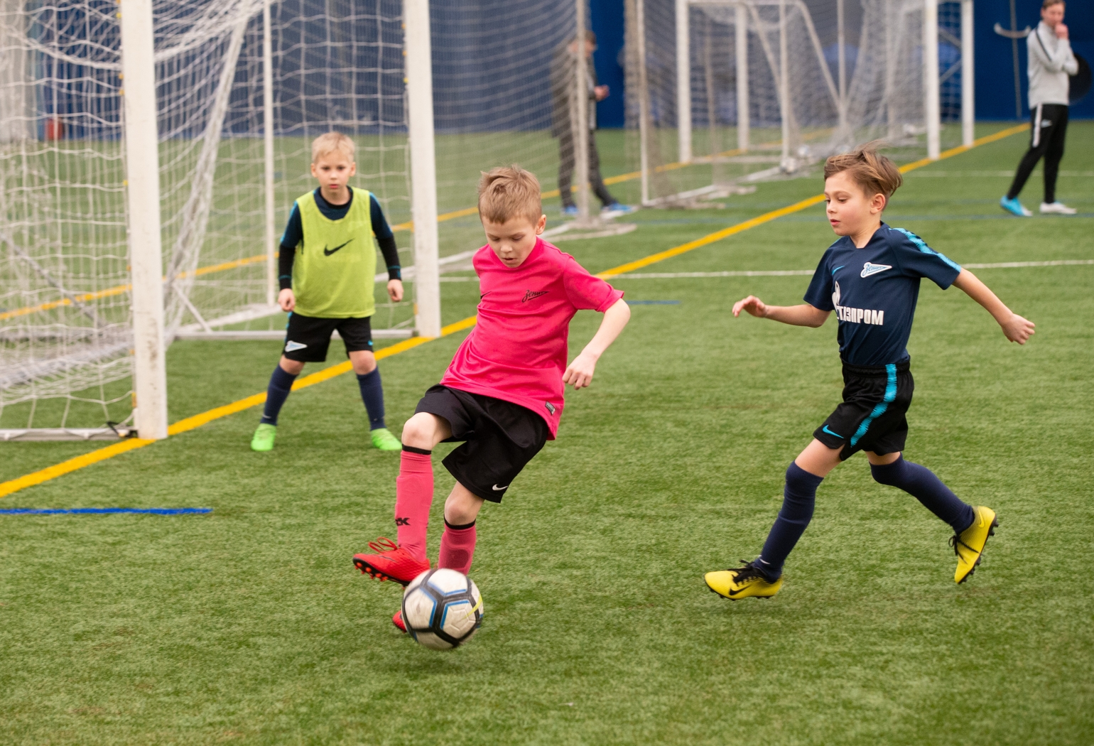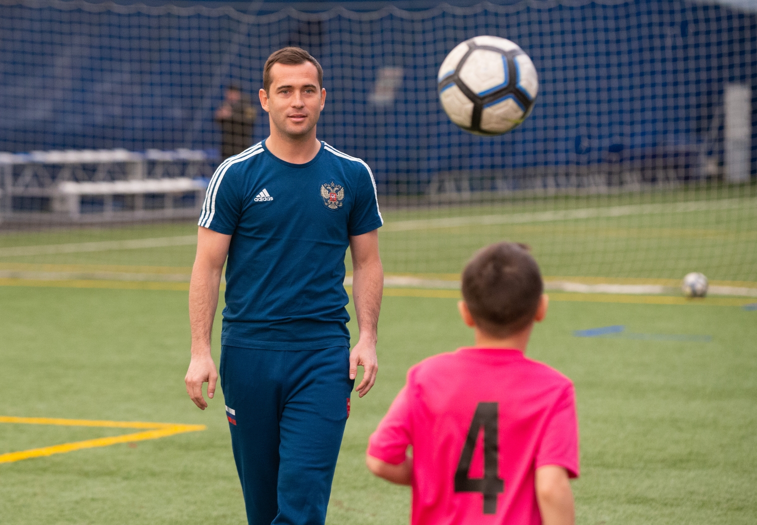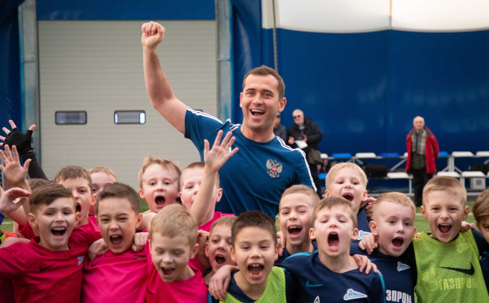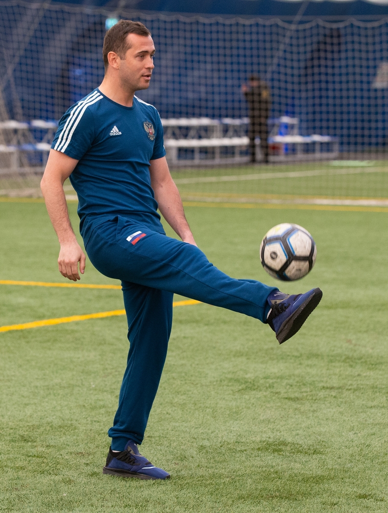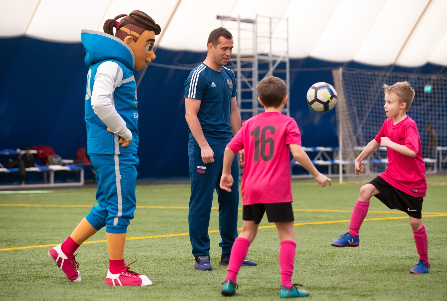27.03.2019. Россия, Санкт-Петербург. Талисман Евро-2020 «Скиллзи» в сопровождении экс-игрока сине-бело-голубых и сборной России Александра Кержаковова посетили «Газпром»-Академию ФК «Зенит» и провели совместный мастер-класс для ее воспитанников.Автор: Евгений Асмолов / ФК «Зенит»