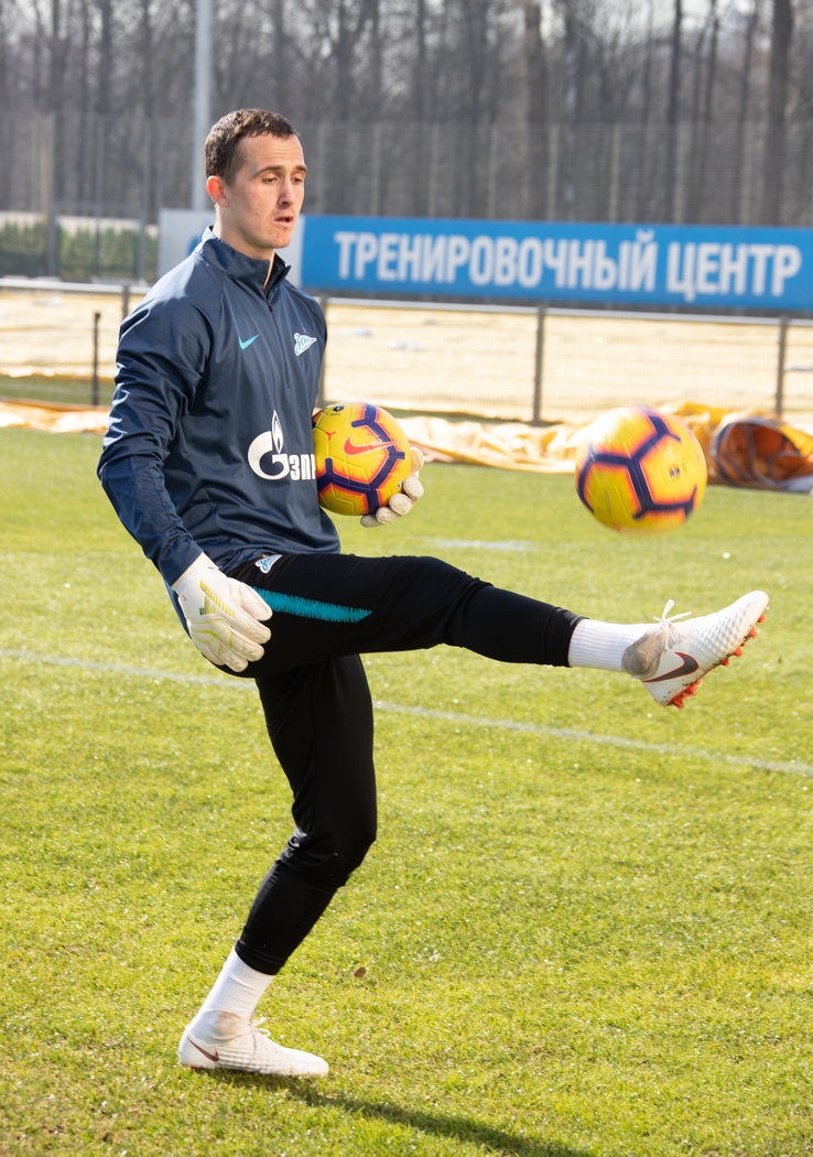 05.04.2019. Россия, Санкт-Петербург, «Газпром»-тренировочный центр. Открытая тренировка основного состава ФК «Зенит» перед матчем Российской Премьер-лиги 2018/19, 22-й тур, «Локомотив» — «Зенит». На снимке: Андрей Лунёв, вратарь ФК «Зенит».Автор: Вячеслав Евдокимов / ФК «Зенит»