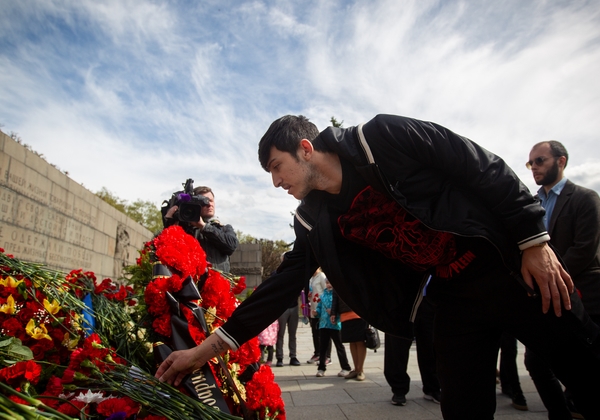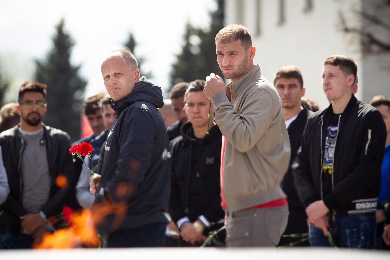 08.05.2019, Россия, Санкт-Петербург. В честь 74-й годовщины Победы в Великой Отечественной войне футболисты, тренерский штаб ФК «Зенит» и воспитанники и руководство «Газпром»-Академии ФК «Зенит» возложили цветы к монументу «Мать-Родина» на Пискаревском мемориальном кладбище. На снимке: Эльмир Набиуллин, защитник ФК «Зенит».Автор: Виктория Ламзина / ФК «Зенит»