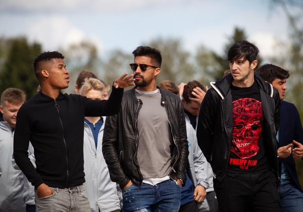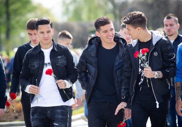 08.05.2019, Россия, Санкт-Петербург. В честь 74-й годовщины Победы в Великой Отечественной войне футболисты, тренерский штаб ФК «Зенит» и воспитанники и руководство «Газпром»-Академии ФК «Зенит» возложили цветы к монументу «Мать-Родина» на Пискаревском мемориальном кладбище. На снимке: Себастьян Дриусси, нападающий ФК «Зенит», Матиас Краневиттер, полузащитник ФК «Зенит», Эмилиано Ригони, полузащитник ФК «Зенит».Автор: Виктория Ламзина / ФК «Зенит»