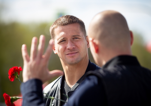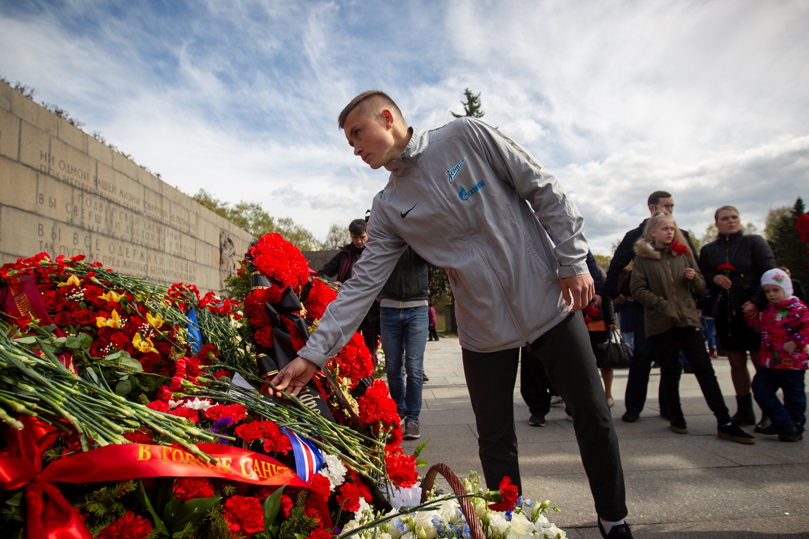 08.05.2019, Россия, Санкт-Петербург. В честь 74-й годовщины Победы в Великой Отечественной войне футболисты, тренерский штаб ФК «Зенит» и воспитанники и руководство «Газпром»-Академии ФК «Зенит» возложили цветы к монументу «Мать-Родина» на Пискаревском мемориальном кладбище. На снимке: Олег Шатов, полузащитник ФК «Зенит».Автор: Виктория Ламзина / ФК «Зенит»