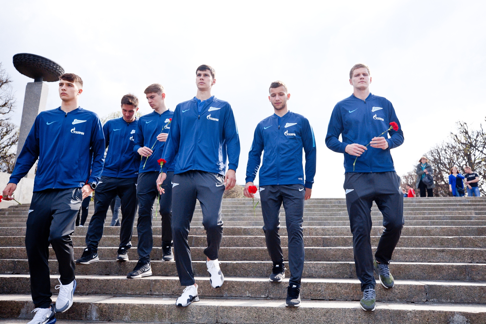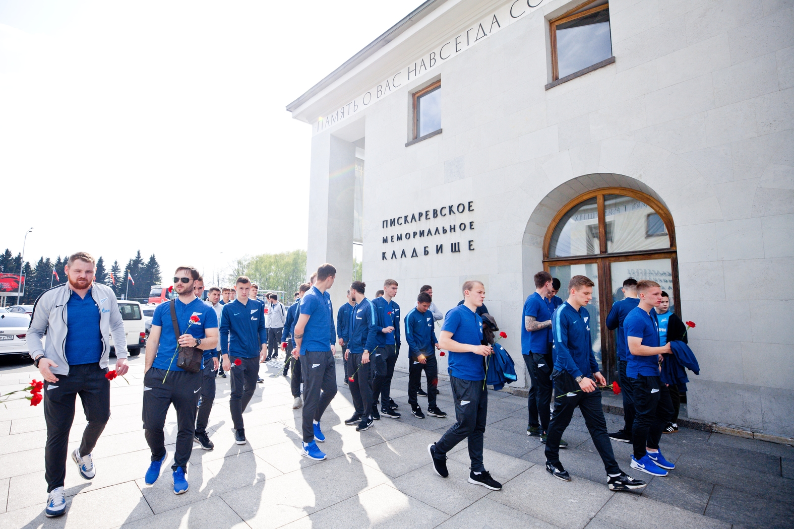 10.05.2019. Россия, Санкт-Петербург, Пискарёвское мемориальное кладбище. Игроки «Зенита»-2 возлагают цветы на Пискаревском мемориальном кладбище.Автор: Анна Мейер / ФК «Зенит»