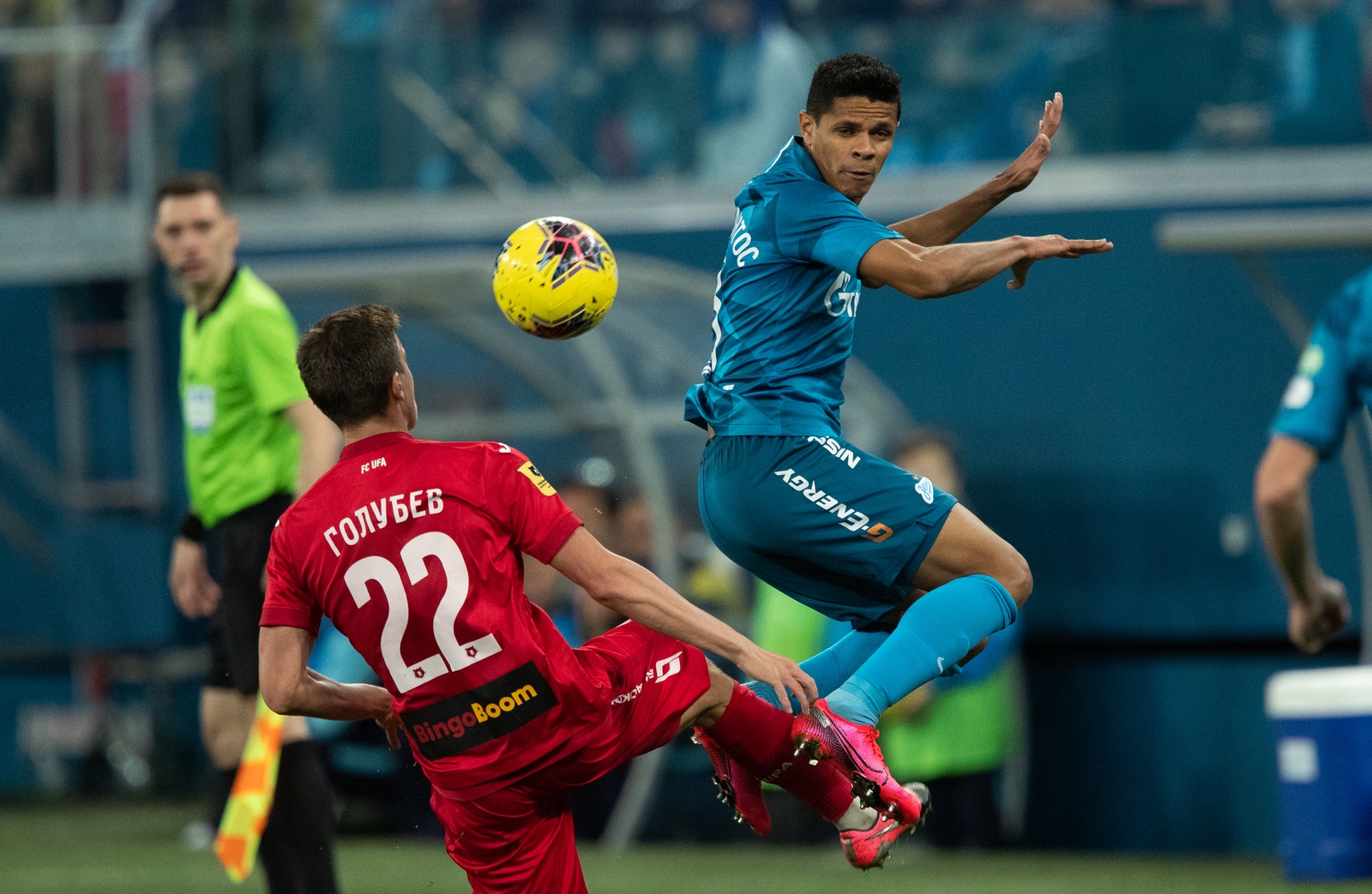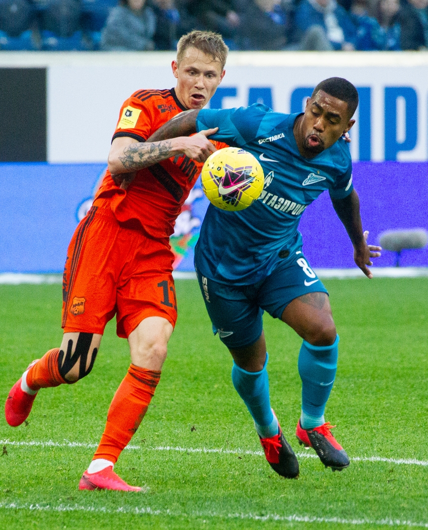 14.03.2020. Россия, Санкт-Петербург, «Газпром Арена». ТИНЬКОФФ Российская Премьер-Лига 2019/20, 22-й тур, «Зенит» — «Урал». На снимке в синей форме: Малком, полузащитник ФК «Зенит».Автор: Вячеслав Евдокимов / ФК «Зенит»
