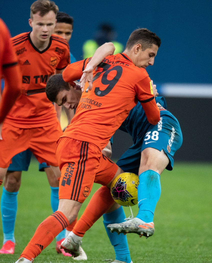 14.03.2020. Россия, Санкт-Петербург, «Газпром Арена». ТИНЬКОФФ Российская Премьер-Лига 2019/20, 22-й тур, «Зенит» — «Урал». На снимке в синей форме: Леон Мусаев, полузащитник ФК «Зенит».Автор: Вячеслав Евдокимов / ФК «Зенит»