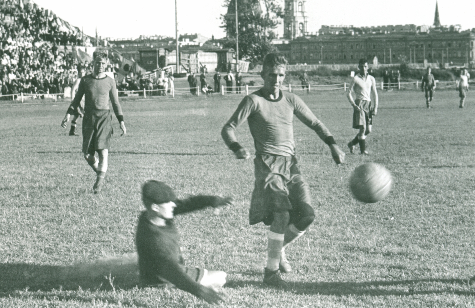 СССР. Ленинград. Первый в Ленинграде футбольный матч на первенство СССР по группе А между командами «Сталинец» (Ленинград) и «Торпедо» (Москва), проведенный на стадионе им. Ленина в день открытия стадиона.Автор: Э. Хайкин / ФК «Зенит»