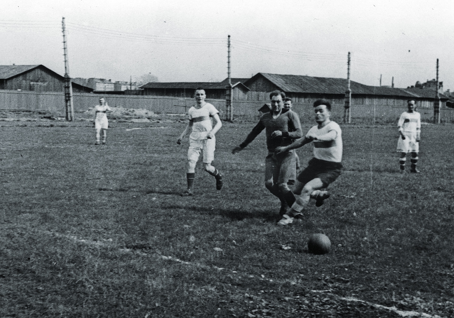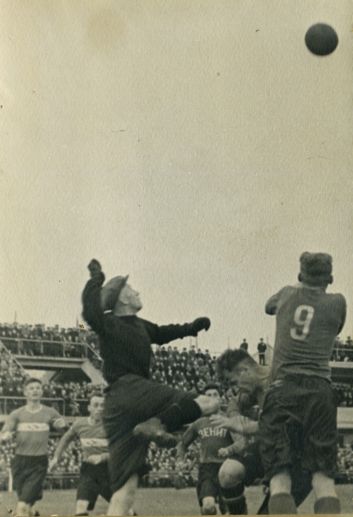 СССР. Ленинград. Момент игры на стадионе «Динамо» между футболистами общества «Динамо» и командой Энского завода. Матч состоялся 31 мая 1942 года.Автор: Б. Васютинский / ФК «Зенит»