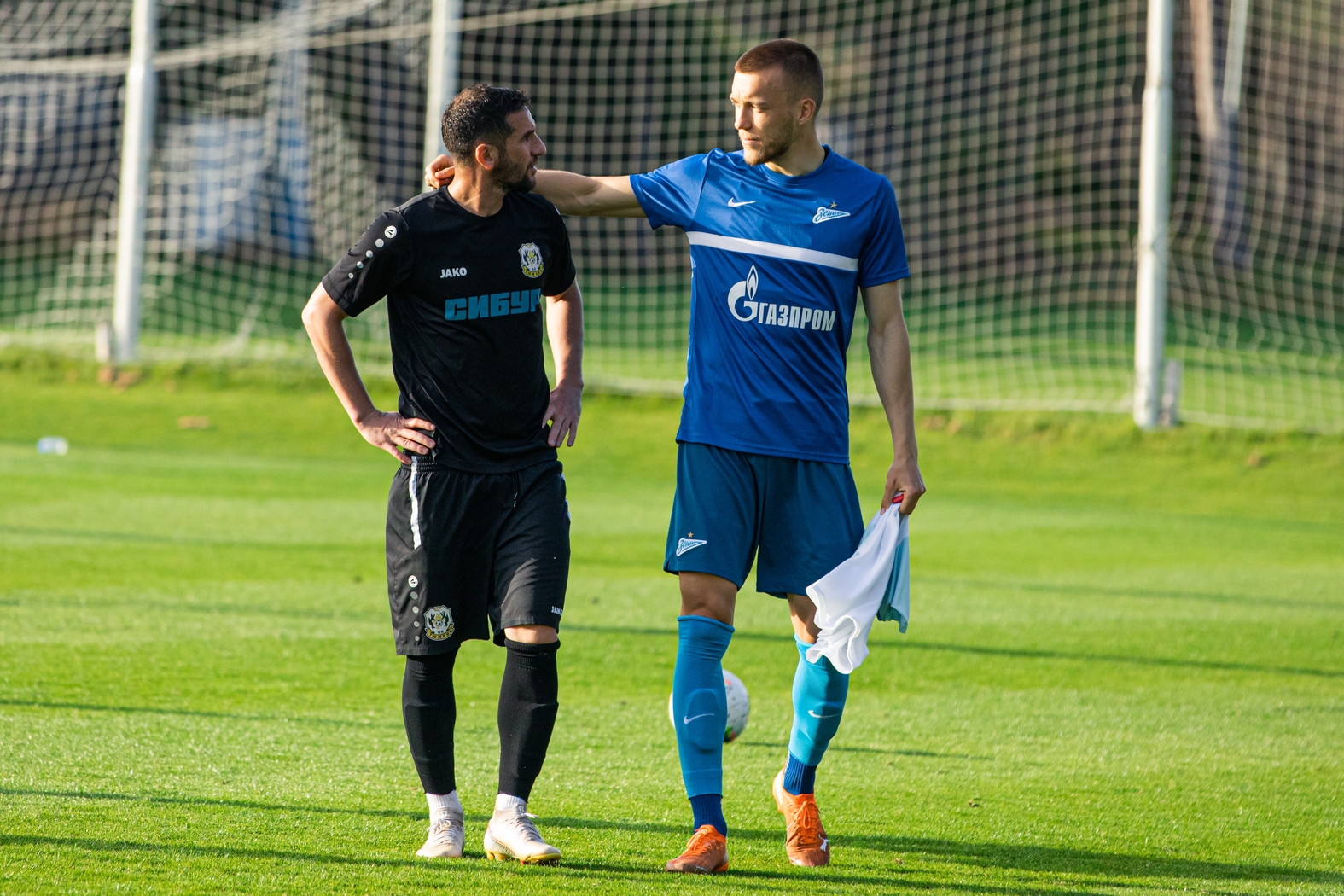 21.03.2021. Турция, Белек. Третьи сборы «Зенита»-2 в Турции: Контрольный матч «Зенит»-2 — «Тюмень». На снимке: Саба Сазонов, защитник ФК «Зенит», и Николай Рыбиков, вратарь ФК «Зенит».Автор: Анна Мейер / ФК «Зенит»