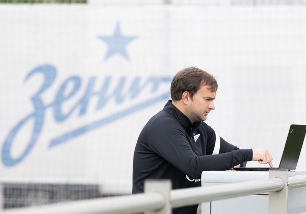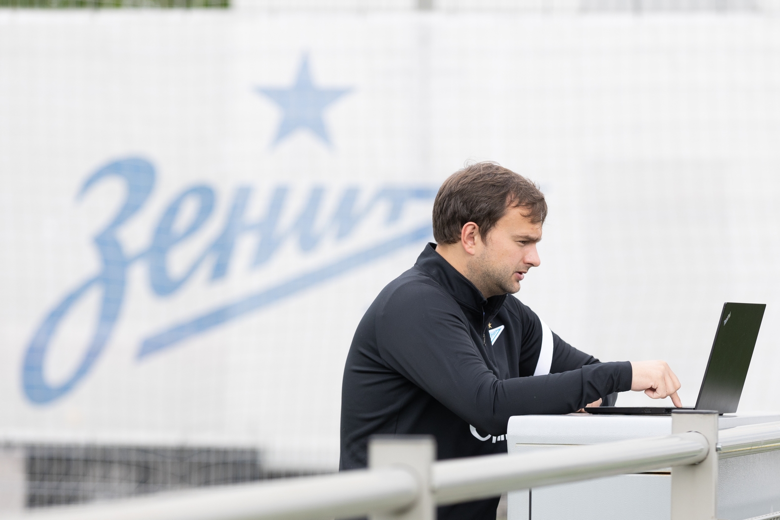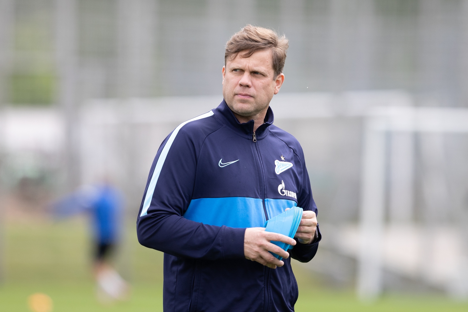 26.05.2021. Россия, Санкт-Петербург, «Газпром»-тренировочный центр. Тренировка ФК «Зенит»-2 перед матчем ОЛИМП — Первенство ПФЛ 2020/21, 27-й тур, «Динамо»-2 — «Зенит»-2. На снимке: Владислав Радимов, главный тренер ФК «Зенит»-2.Автор: Евгений Васильев / ФК «Зенит»