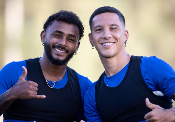 02.02.2021. Объединенные Арабские Эмираты, Дубай. Вторые «Газпром»-тренировочные сборы ФК «Зенит»: 02 февраля, вечерняя тренировка. На снимке: Вендел, полузащитник ФК «Зенит» и Вильмар Барриос, полузащитник ФК «Зенит».Автор: Вячеслав Евдокимов / ФК «Зенит»