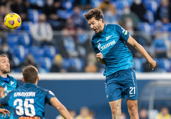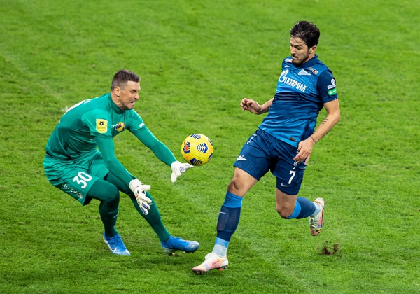 24.04.2021. Россия, Санкт-Петербург, «Газпром Арена». Тинькофф Российская Премьер-Лига 2020/21, 27-й тур, «Зенит» — «Ротор». На снимке в синей форме: Малком, полузащитник ФК «Зенит».Автор: Вячеслав Евдокимов / ФК «Зенит»