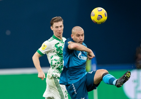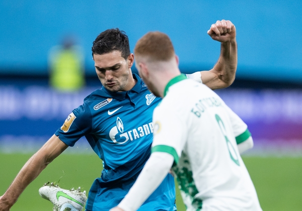 20.02.2021. Россия, Санкт-Петербург, «Газпром Арена». Бетсити Кубок России 2020/21, 1/8 финала, «Зенит» — «Арсенал». На снимке в синей форме: Далер Кузяев, полузащитник ФК «Зенит».Автор: Вячеслав Евдокимов / ФК «Зенит»