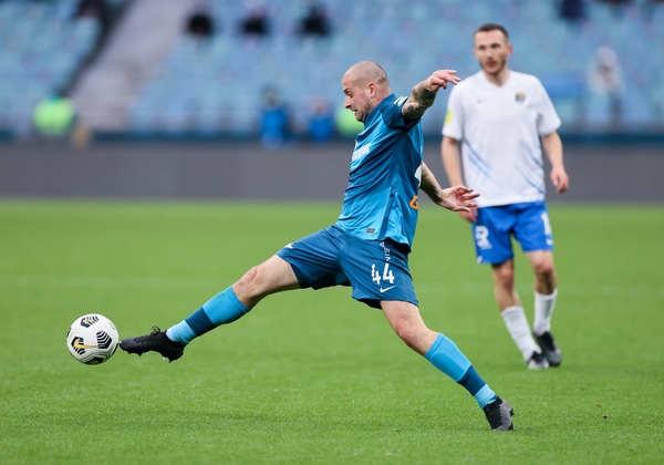 24.04.2021. Россия, Санкт-Петербург, «Газпром Арена». Тинькофф Российская Премьер-Лига 2020/21, 27-й тур, «Зенит» — «Ротор». На снимке в синей форме: Андрей Мостовой, полузащитник ФК «Зенит».Автор: Вячеслав Евдокимов / ФК «Зенит»