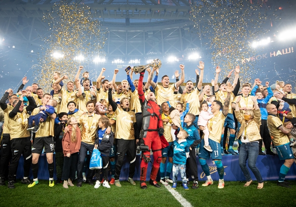 02.05.2021. Россия, Санкт-Петербург, «Газпром Арена».Тинькофф Российская Премьер-Лига 2020/21. Церемония награждения команды «Зенит» золотыми медалями и кубком чемпиона России.Автор: Анна Мейер / ФК «Зенит»