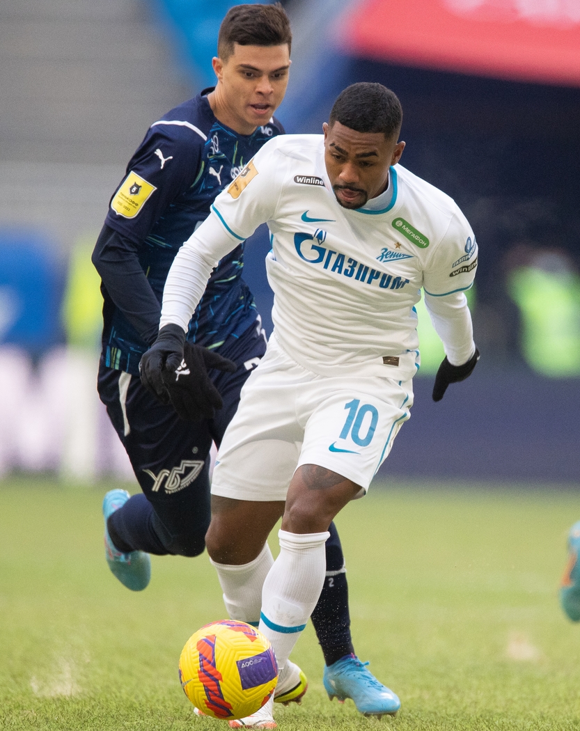 13.03.2022. Россия, Самара, «Солидарность Арена». Тинькофф Российская Премьер-Лига 2021/22, 21-й тур, «Крылья Советов» — «Зенит». На снимке в белой форме: Малком, полузащитник ФК «Зенит».Автор: Вячеслав Евдокимов / ФК «Зенит»