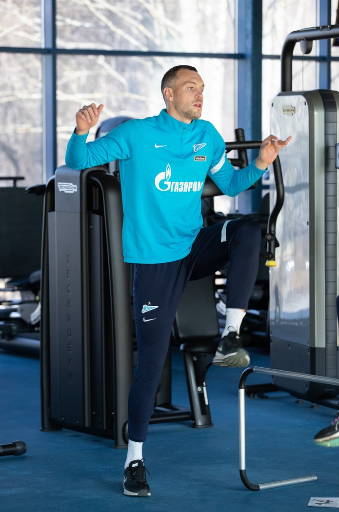 24.03.2022. Россия, Санкт-Петербург, «Газпром»-Тренировочный центр. Тренировка основного состава ФК «Зенит» в Удельном парке. На снимке: Артём Дзюба, нападающий ФК «Зенит».Автор: Евгений Асмолов / ФК «Зенит»