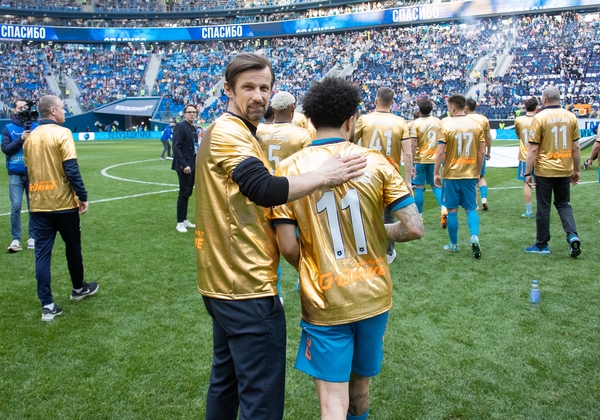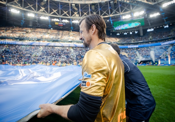 07.05.2022. Россия, Санкт-Петербург, «Газпром Арена». Празднование Чемпионства после матча Тинькофф Российской Премьер-Лиги 2021/22, 28-й тур, «Зенит» — «Химки». На снимке: Михаил Кержаков, вратарь ФК «Зенит».Автор: Анна Мейер / ФК «Зенит»
