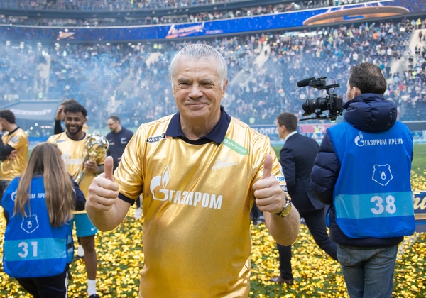 07.05.2022. Россия, Санкт-Петербург, «Газпром Арена». Празднование Чемпионства после матча Тинькофф Российской Премьер-Лиги 2021/22, 28-й тур, «Зенит» — «Химки». На снимке: Александр Анюков, тренер ФК «Зенит».Автор: Анна Мейер / ФК «Зенит»