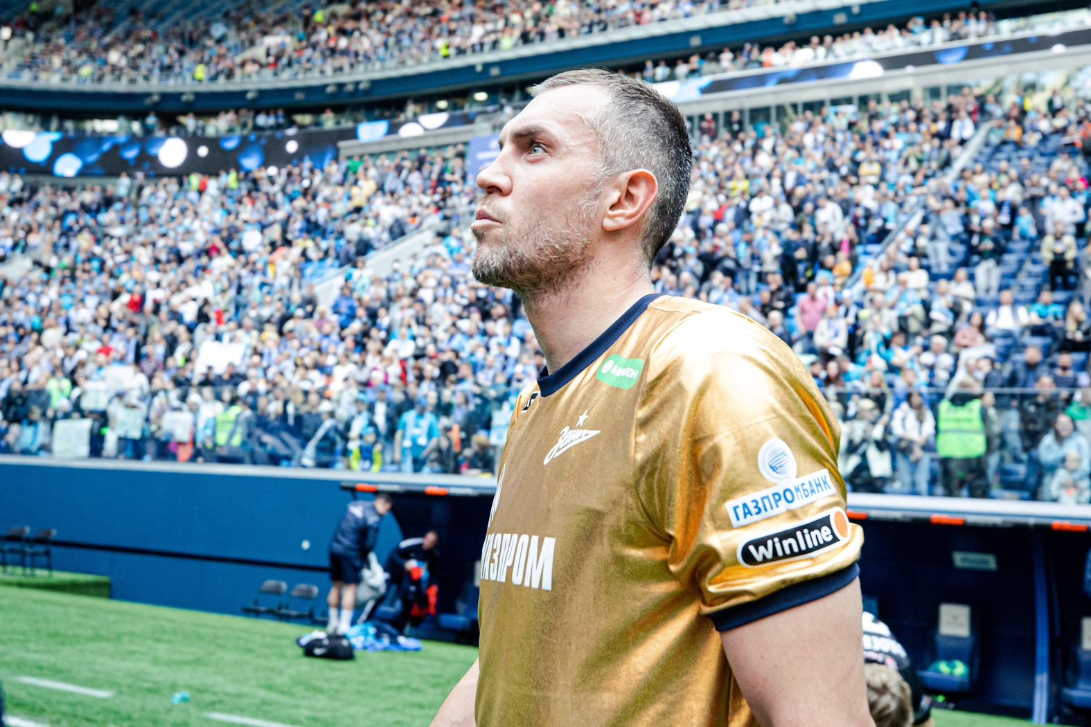 07.05.2022. Россия, Санкт-Петербург, «Газпром Арена». Празднование Чемпионства после матча Тинькофф Российской Премьер-Лиги 2021/22, 28-й тур, «Зенит» — «Химки». На снимке: Артём Дзюба, нападающий ФК «Зенит».Автор: Анна Мейер / ФК «Зенит»