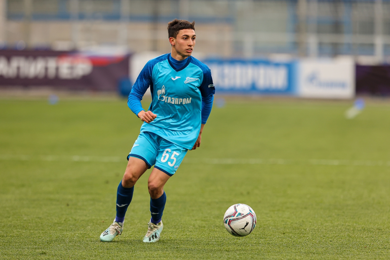 05.05.2023. Россия, Санкт-Петербург, «Смена». МФЛ 2022/23, 26-й тур, «Зенит» — «Динамо». На снимке в синей форме: Даниил Столяров, полузащитник ФК «Зенит».Автор: Алена Яшина / ФК «Зенит»