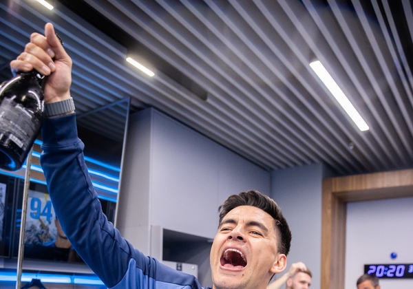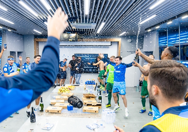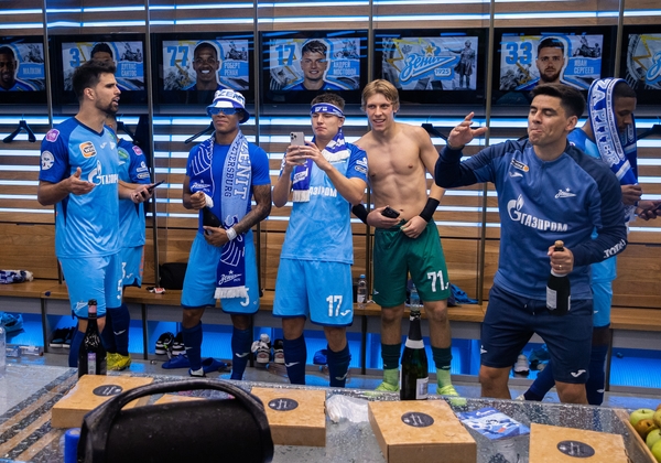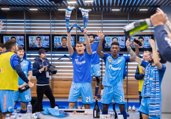 07.05.2023. Россия, Санкт-Петербург, «Газпром Арена». Команда в раздевалке празднует победу в Чемпионате России после матча Мир Российская Премьер-Лига 2022/23, 26-й тур, «Зенит» — «Спартак».Автор: Анна Мейер / ФК «Зенит»