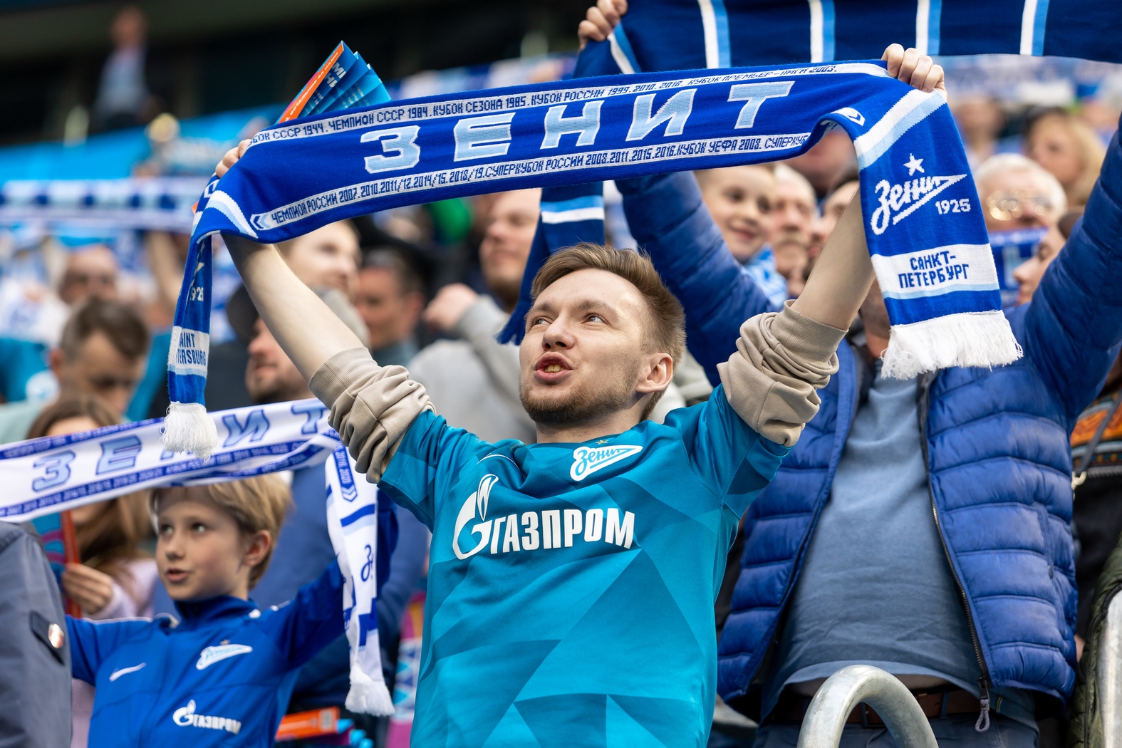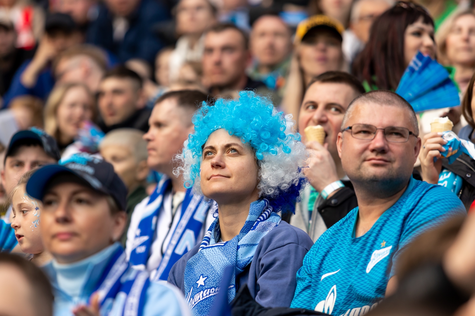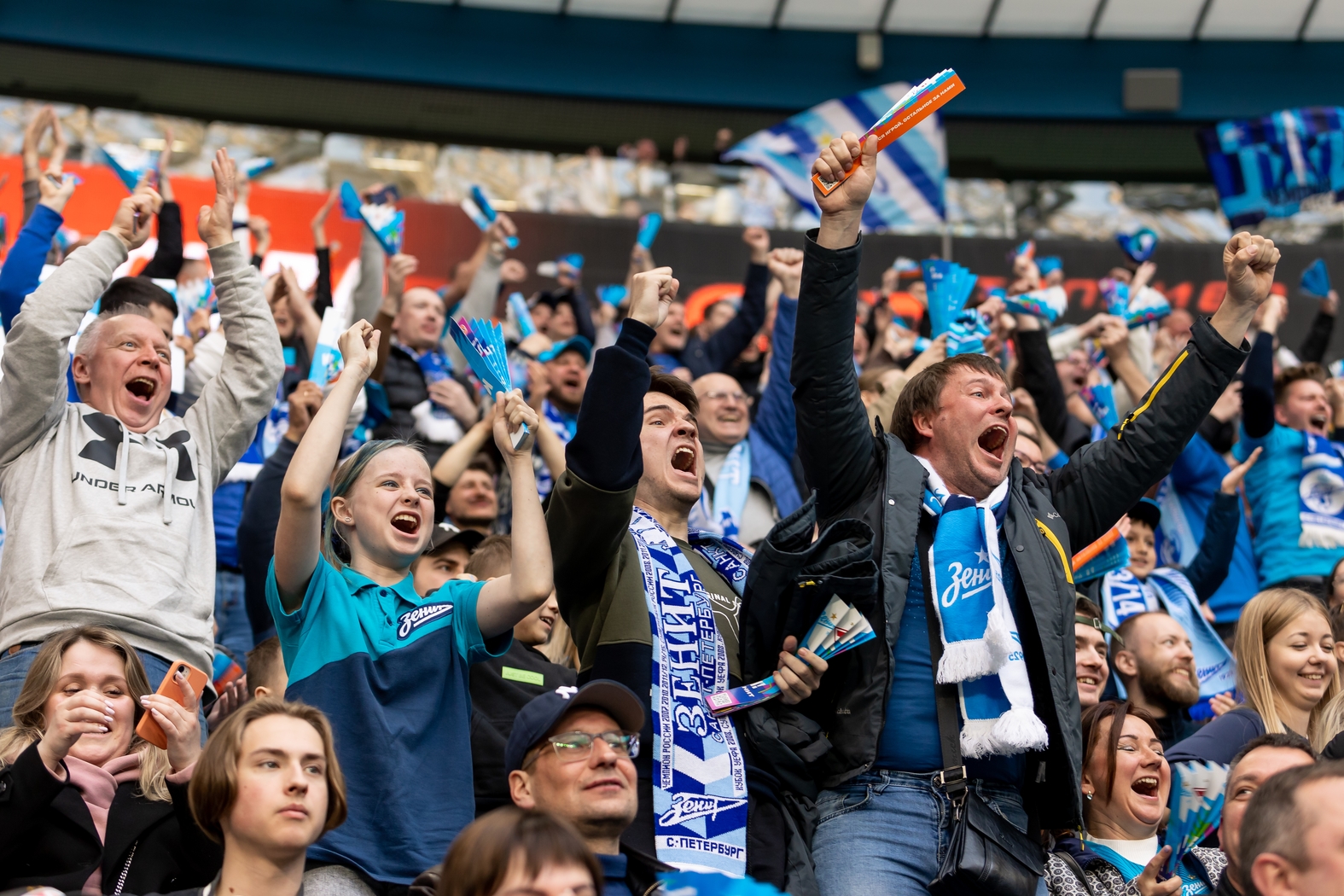 07.05.2023. Россия, Санкт-Петербург, «Газпром Арена» . Болельщики на матче Мир Российская Премьер-Лига 2022/23, 26-й тур, «Зенит» — «Спартак».Автор: Алена Яшина / ФК «Зенит»