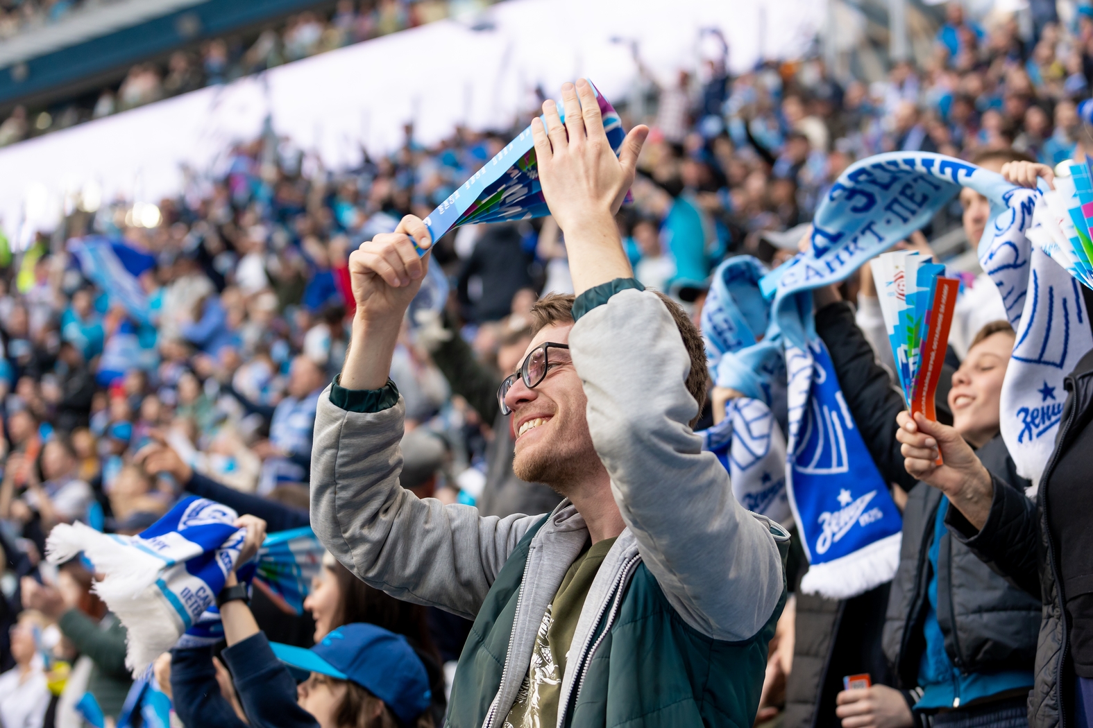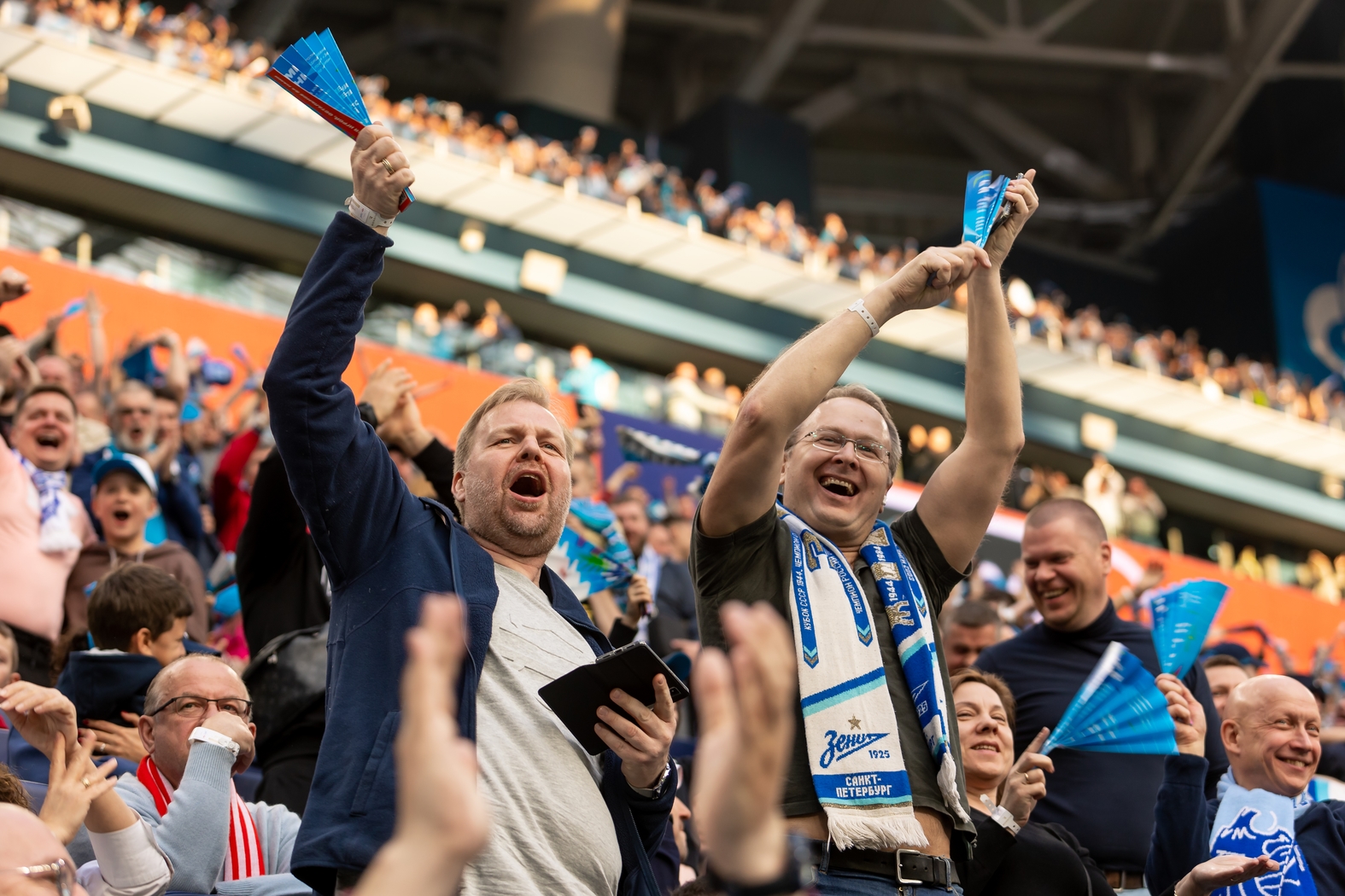 07.05.2023. Россия, Санкт-Петербург, «Газпром Арена» . Болельщики после матча Мир Российская Премьер-Лига 2022/23, 26-й тур, «Зенит» — «Спартак».Автор: Евгений Васильев / ФК «Зенит»