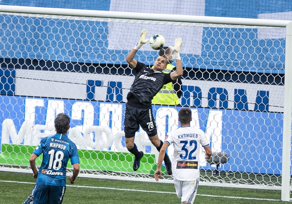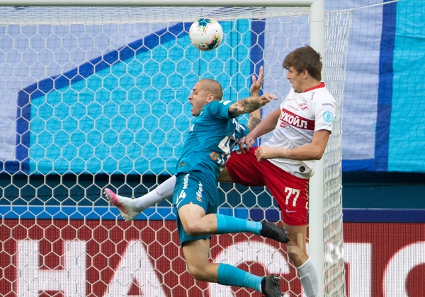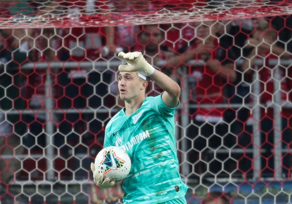 01.09.2019. Россия, Москва, «Открытие Арена». Российская Премьер-Лига 2019/20, 8-й тур, «Спартак» — «Зенит». На снимке в бирюзовой форме: Андрей Лунёв, вратарь ФК «Зенит».Автор: Вячеслав Евдокимов / ФК «Зенит»