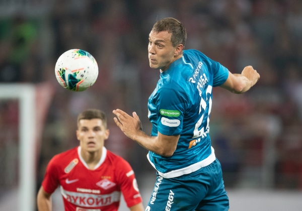 01.09.2019. Россия, Москва, «Открытие Арена». Российская Премьер-Лига 2019/20, 8-й тур, «Спартак» — «Зенит». На снимке в синей форме: Артём Дзюба, нападающий ФК «Зенит».Автор: Вячеслав Евдокимов / ФК «Зенит»