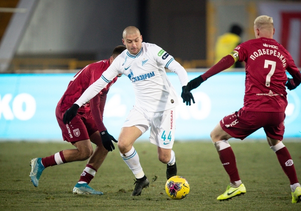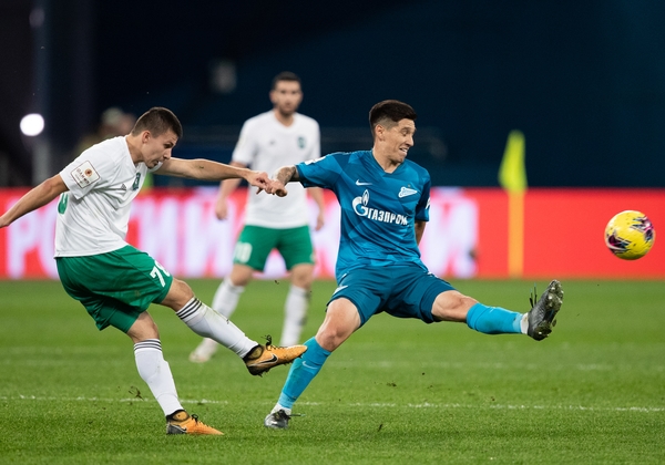 04.03.2020. Россия, Грозный, «Ахмат Арена». ОЛИМП — Кубок России 2019/20, 1/4 финала, «Ахмат» — «Зенит». На снимке в синей форме: Малком, полузащитник ФК «Зенит».Автор: Вячеслав Евдокимов / ФК «Зенит»