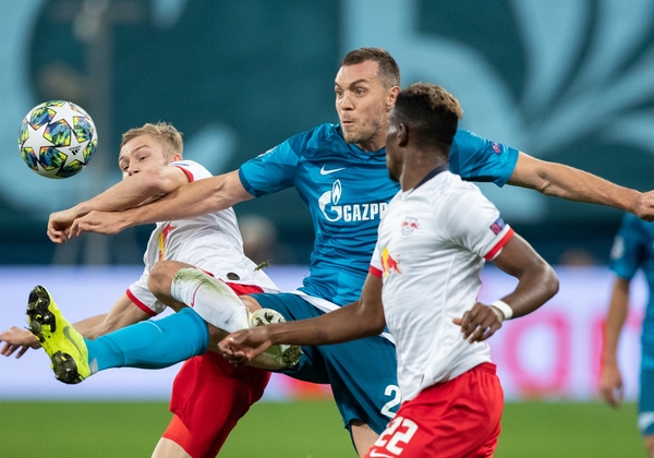 05.11.2019. Россия, Санкт-Петербург, «Газпром Арена». Лига чемпионов УЕФА 2019/20, группа G, «Зенит» — «РБ Лейпциг». На снимке в синей форме: Артём Дзюба, нападающий ФК «Зенит».Автор: Вячеслав Евдокимов / ФК «Зенит»