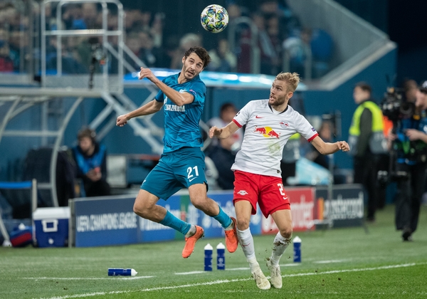 05.11.2019. Россия, Санкт-Петербург, «Газпром Арена». Лига чемпионов УЕФА 2019/20, группа G, «Зенит» — «РБ Лейпциг». На снимке в синей форме: Александр Ерохин, полузащитник ФК «Зенит».Автор: Вячеслав Евдокимов / ФК «Зенит»